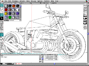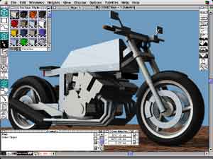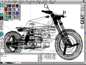 This shows the bike in hidden line view mode. Click the picture to enlarge the screendump. |