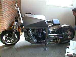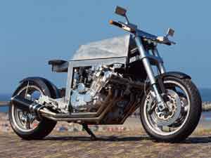 After that it was very tempting to design my own bike. Central element: the wide engine. The rest: leave out what may be left out. Just pure simplicity. I chose stainless steel because it is what it is: pure. I designed a narrow and angular frame to make the engine look wider. |