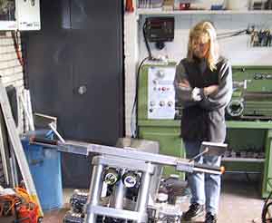After this I contacted Willy Naves from Aalten, the Netherlands, who at that time teached metalworking in Doetinchem. He is a real no-nonsense craftsman and owned a self-built Martin-CBX, winner of several awards. Here he has his picture taken voluntarily, which is a rare occasion. |