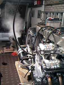 A special moment: the engine makes its first rounds on April 17th 1999. Don't mind the smoke ;-) | |||