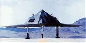 The Stealth Bomber (officially Lockheed F-117A) was designed to be 'angular' to avoid radar contact. Something that (perhaps unintendly) gives the plane a futuristic look. | |||||