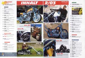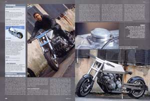 Germany's 'Bikers Live' featured the CBX in their March/April 2003 issue. No less than six pages were filled with (nice!) pictures and text by Sabine Welte. Click the picture for an enlarged view of the content pages. (written in German language) |