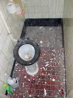 The house, built around 1905, needed 'intense attention'. At certain moment the toilet looked like the ones on many bike events. Well, not exactely: this one flushed, and look: toiletpaper! | |||||