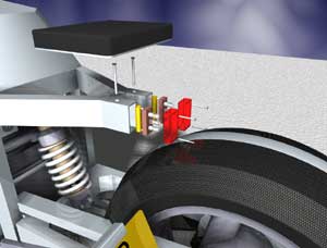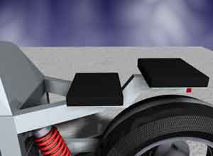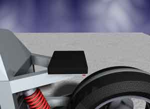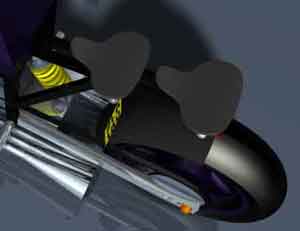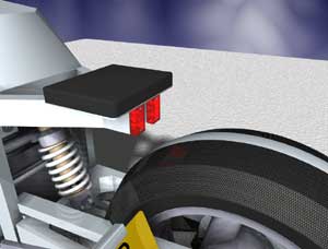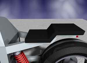 A triangular construction carries its passengers. In this design the taillights are located at the rear fender. |