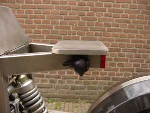 The steel baseplate is covered with 3 cm of foam and has leather upholstery. |
