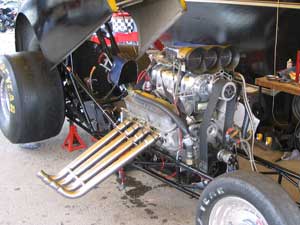 | My next bike will be based on a V8 engine, so these dragsters had my special attention. Most of them, like this one, used bigblocks with superchargers. Sooner or later by V8-bike will be on the strip as well. | ||||