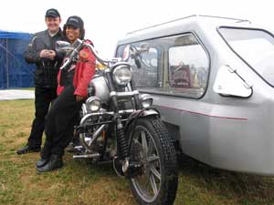 Like three years ago we met the energetic and humoristic Reverend Paul Sinclair and his charming wife Marian with their motorcycle hearse. They have a 200mph Hayabusa version as well; check out his site. | |||