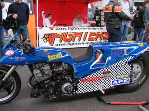 Klaus Sarembe's racer posed in front of the stand from the (slightly hungover) Fighters Magazin team. | |||