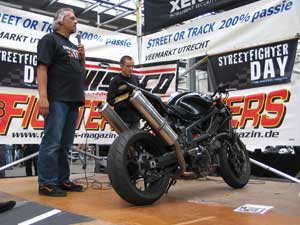 The jury for the streetfighter streetfighter contest this year were designer Seroj de Graaf, journalist Jeroen 'Spike' van der Veen, German journalist Sabine 'Bine' Welte, and me. | |||