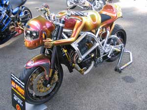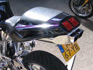 And another Suzuki: this time for best paintjob, by G.L.Paints. The paintjob added to the form of the components. A pity I don't have a more detailed picture. After the prize giving ceremony we concluded that all prize winners were Suzuki's this year; the three preceding years it were only FireBlades. Is it a coincidence that Mr.7/11 is no part of the jury anymore ;-) | |||