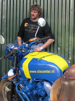 September 15th 2007: the annual Hokfeest ('Hok party') by bikebuilder group Hok 14. But before going there I visited Bert Vonderman, owner of Sixcenter Motoren (site: see tank). He's the Dutch Kawasaki Z1300, CBX 1000 en Benelli Sei monopolist regarding spare parts. Last summer he went to the CBX Eurotreffen in Sweden, which explains the paintjob on his CBX. |