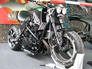 After the show Sabine wanted to do photoshoots of some bikes. She was baffled when she found out the organisation kept the showbikes hostage: only their photographer was allowed to make pictures! An evil game which bike builders should not accept. Or, as they say in Germany: "So ein Mist!". I hope next year this won't happen again. |