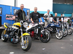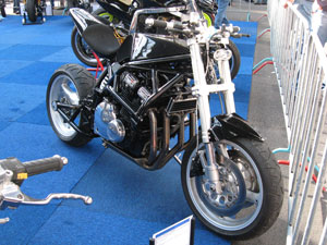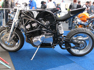 An alien creature between mostly sport bikes: it's ratbike 'Gonzo', built by Floris Velthuis. |