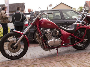 May 16, 2010: I joined the trip organized by a pub called 't Fuske* at Millingen aan de Rijn, a town I live close by. It was their eleventh trip in a row and for me the third time I participated. At my last one, in October 2008, it rained cats and dogs all day. Therefore only seven of the twenty participating bikes finished the whole trip, including me. Rain may spoil the fun a bit, staying at home is not a serious option though. |