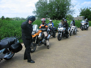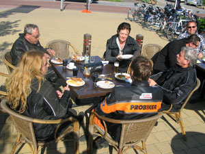 Obviously you can't make a good trip with eighty bikes. Hence we rode in a group of nine. The pace was perfect: not too slow because my air cooled CBX and me strongly dislike that. On the faster roads – i.e. dikes, and fortunately there were many –- the group split up and we united at the end of the racetrack ... uhh ... route. |