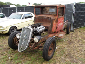 This unrestored hot rod looked like it could fall apart any moment. marcars trailered it to the event. | |||
