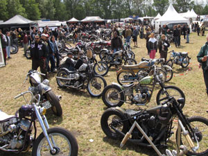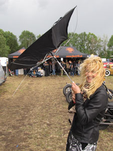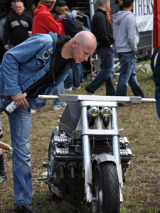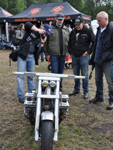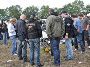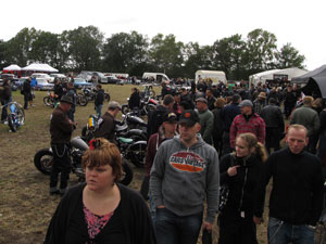 ... and after a succefull (and dry!) ride I arrived at the airport nearby the German village Bottrop. I did not intend to put the CBX on the show: it's not a classic '30s / '40s / '50s / '60s bike, not a twin, not an American engine. But as I arrived I found out that I wasn't allowed to put the tent next to the bike, and I didn't like that a bit: I certainly won't leave the CBX at an unattended parking lot. Then an employee called organizer Ivan*, and shortly after I was allowed to enter the (guarded!) show grounds. * Picture: Dirk Behlau |