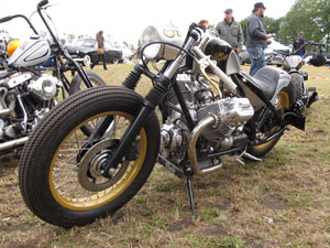 Mine was not the only 'Japan-based' bike. There were some chopped twins like the popular Yamaha XS650 and this one with a Honda powerplant. | |||