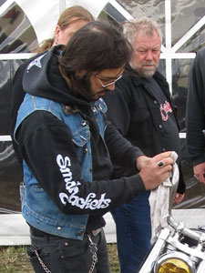 Between the showers some polished their bike. To me that was a pretty hopeless activity. |