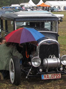 ... alternated with fierce rainfall. Nevertheless, the rain didn't stop everyone examining the cars. |