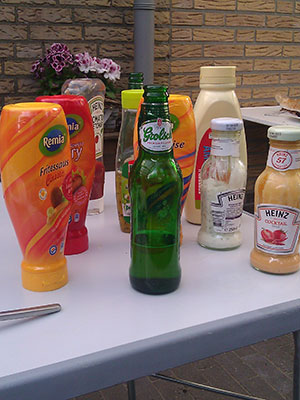 Surrounded by sauces there was another familiar ingredient of the evening: beer. |