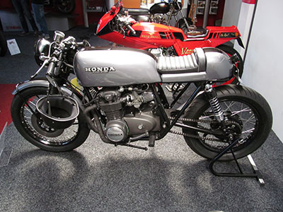 Less striking but very pure in style, this cafe racer by Jarno de Vries, based on a CB500. This bike won the visitors award. |