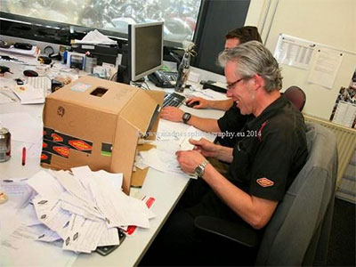 The moment of truth: the jury deliberating. Just like last year Henny Kroeze (center), Onno 'berserk' Wieringa (right) and myself. On the left you can see the obviously totally impartial Goos (who occasionally had a hint of opinion though ;)). |