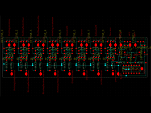 Niels wasn't the only one working on the electronics. Dr. Ir. Benno Krabbenborg and me are friends since we were born and, thirty years after our Lego Technic era, we developed all the V8's non-motormanagement electronics: the lights. As a decent Dr. Ir. (in real life he designs computer chips) suits, everything was first designed and simulated on the computer. Click the image to enlarge it. |