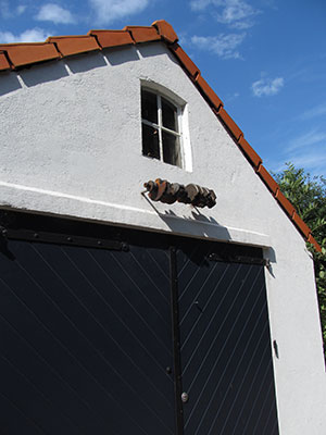 ... and bolted the crankshaft to my garage; always wanted a V8 crankshaft above the entry. |