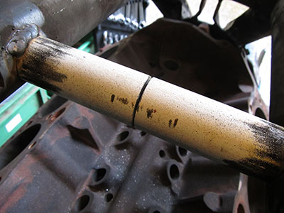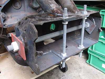 I bolted the frame to the engine and took it to Smit Gloeidienst. For very little money and within a week (thanks guys!) they heated it up with 30°C per hour to about 570°C. When this temperature was reached the oven cooled down with 50°C per hour, to 100°C. This procedure is called 'annealing treatment'. |