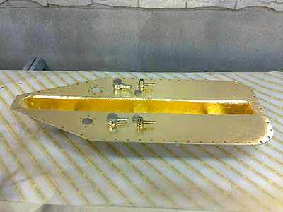 ... but covered with a thin layer of gold foil this time. Not because it's pretty but because it will reflect the heat from the engine in a very effective way. | |||