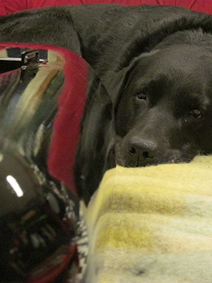 The rest of the painted parts are black. Of course. On the left you see a part of the tank, and Tjeerd's dog. |