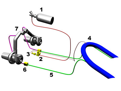 The third (and hopefully final...) system I designed is as follows: 1: I'll sacrifice one of my NOS bottles for the water-methanol system by filling it with 10 bar of air or nitrogen. It is a nice theory, and I'm looking forward experimenting with it. But right now it's not my main concern: at lower revs, the intake temperature isn't a real issue because the engine has enough power, even without extra cooled intake air. |